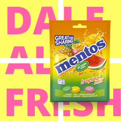Con Mentos Tropical Mix comparte los sabores más fresquitos del verano: sandía, piña y mango-maracuyá.