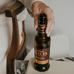 Cerveza especial. Elaborada con tres variedades de lúpulos Centroeuropeos y tres variedades de malta. Madurada en bodega.