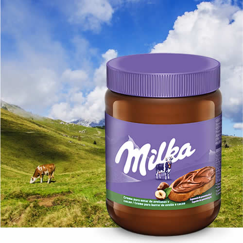 Nueva Crema de cacao con avellanas Milka, perfecta para endulzar tus desayunos y meriendas. Toda la cremosidad y el delicioso sabor del chocolate Milka, ahora para untar. Elaborado con leche 100% de los Alpes.