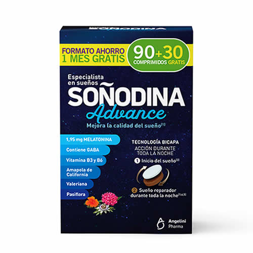 Es un complemento alimenticio con melatonina, GABA, extractos de amapola de california, pasiflora y valeriana, vitaminas B3 y B6. Su innovadora forma galénica en comprimido bicapa permite una acción durante toda la noche.