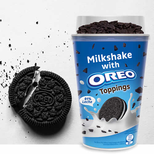 Disfruta en cualquier parte y a cualquier hora de la mezcla única de leche y galletas Oreo.