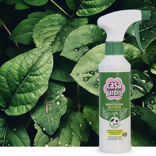 Casa Jardín Insecticida Líquido multiuso es un insecticida pulverizable para el entorno doméstico que actúa eliminando de una forma radical y eficaz todo tipo de insectos reptantes, especialmente cucarachas y hormigas, así como insectos voladores, cualquiera que sea su forma de vida (huevo, larva, crisálida o insecto).