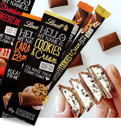 Lindt Hello! es una marca que sorprende por sus innovadoras recetas. Diferente, divertida, cosmopolita y original. Chocolates únicos y deliciososcon un diseño premium. Te traemos tres de sus riquísimas variedades en formato tableta y stick.