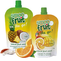Smoofruit es un saludable y delicioso Snack de fruta con trozos de fruta 100% natural. Es el único producto del mercado elaborado a base de fruta y en formato pouch con trozos de fruta natural, sin azúcar añadido, sin grasas, sin alérgenos y sin conservantes.