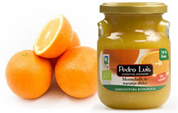Mermelada Extra de Naranja Dulce de Agricultura Ecológica, sin cáscara. Esta mermelada está elaborada con fruta, azúcar de caña y pectina de frutas. El proceso se realiza en una bola de concentración a temperaturas inferiores a 55ºC. Así se consigue una alta concentración de la fruta, manteniendo el color, el sabor y los aromas.