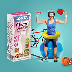 Esta bebida se suma a la amplia familia de horchatas (Horchata de Chufa UHT y Horchata de Chufa Condensada) y bebidas vegetales (Arroz, Arroz con cacao, Arroz con canela, Avena y Avena con frutos rojos) de Costa.