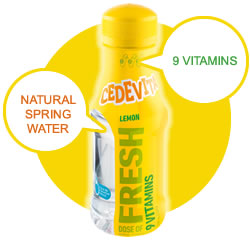 Cedevita Dose of Fresh 9 Vitamins es una bebida de limón que garantiza el aporte del 50% de la cantidad diaria de todas las vitaminas necesarias para un adulto. Al mezclarse la dosis en polvo con el agua en el mismo momento del consumo garantizamos la frescura de las vitaminas.