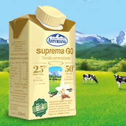 Suprema GO combina lo mejor de la leche Suprema Central Lechera Asturiana con un aromático y ligero sabor a vainilla caramelizada en un envase de 250 ml, perfecto para llevar y disfrutarlo allá donde vayas.