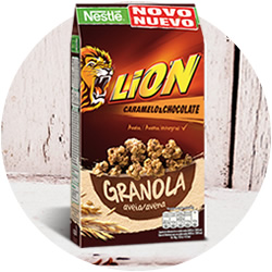 LION® Granola es la alternativa definitiva de muesli crujiente para toda la familia ya que combina la receta original de Lion de caramelo y chocolate con deliciosa y nutritiva avena. Es un producto multicereal, hecho con más de un 48% de avena integral y contiene trigo integral y arroz. Además, es fuente de calcio.