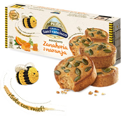 En Granja San Francisco endulzamos nuestro bizcochitos con miel y los elaboramos con los mejores ingredientes: zanahoria, naranja, harina integral, aceite de oliva, pipas de calabaza y miel.