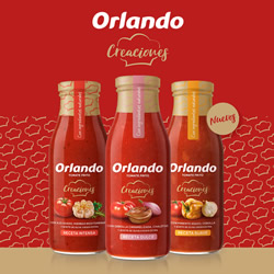 Orlando Creaciones es una nueva gama de tomate culinario con ingredientes naturales y de calidad que permiten elevar el sabor de cualquier plato de manera rápida y sencilla.