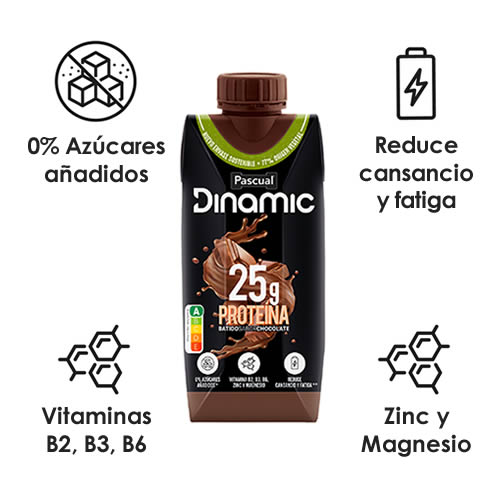 Pascual Dinamic te da 25 gramos de proteínas para mejorar tu rendimiento y recuperación. Con minerales, vitaminas y un gran sabor.