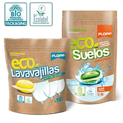 FLOPP ECO es la gama de productos con certificado ecológico envasados en pack 100% biodegradable y compostable.