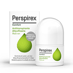 El nuevo antitranspirante Perspirex Comfort Roll-on para Axilas ofrece una alternativa a las pieles delicadas, por poseer una elevada eficacia en el control de la sudoración excesiva y una fórmula con un sistema de cuidado y protección de la piel que lo hace ideal para aquellas personas que desean controlar la sudoración y olor con el máximo cuidado de la piel.