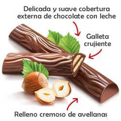 DUPLO es el snack ideal para adultos, gracias a su receta única de deliciosas barritas hechas con el cuidado único de Ferrero: combinación de galleta crujiente con relleno cremoso de avellanas seleccionadas y suave cobertura de chocolate con leche.