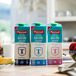 Con nuestra fórmula única aportamos una cantidad significativa de los nutrientes con mayor déficit en la población, ya que todos ellos desempeñan un papel importante en el cuidado del sistema inmunitario. Cada vaso de leche de la gama Salud aporta el 60% de la vitamina B9 diaria recomendada; el 40% de zinc; el 43% de vitamina B6; el 32% de la vitamina D y más del 15% recomendado de las vitaminas B12, A y selenio. Además, Leche Pascual Salud, igual que todas nuestras otras referencias, está certificada por AENOR como leche de bienestar animal y se comercializa en el brik más sostenible del mercado, fabricado con hasta un 89% de fuentes renovables.