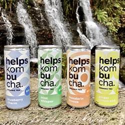 Te presentamos Helps Kombucha. La puedes encontrar en cuatro deliciosos sabores: Blueberry Charm, Mandarin Breeze, Mint Whisper y Ginger Lemon Kick.
