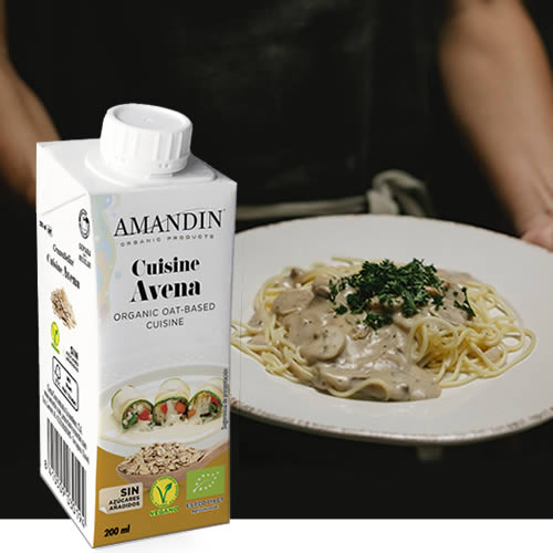 La salsa vegetal Cuisine Avena Bio Amandín® es una crema color blanco hueso de tonos acerados, espesa y de gran opacidad. Presenta un sabor a cereal fresco extremadamente sutil que es ideal para tus salsas más suaves.