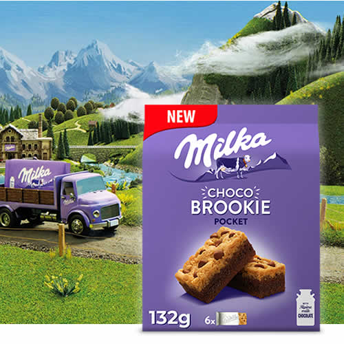 Milka Choco Brookie es una combinación única entre tierno brownie de Milka y crumble de cookie con pepitas de chocolate con leche Milka. Para disfrutar en cualquier momento y lugar.