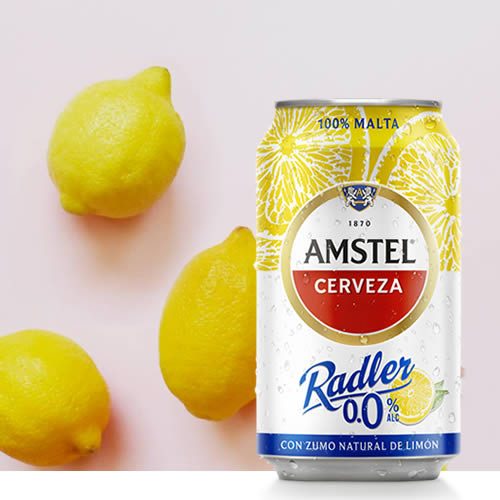 Amstel Radler 0,0 es el equilibrio perfecto para los amantes de lo natural y de la bebida 0,0: una cerveza sin alcohol con zumo natural de limón.