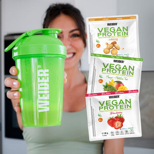 Weider Vegan Protein Mango-Matcha, Fresa y Cookies en DisfrutaBox Pura Vida