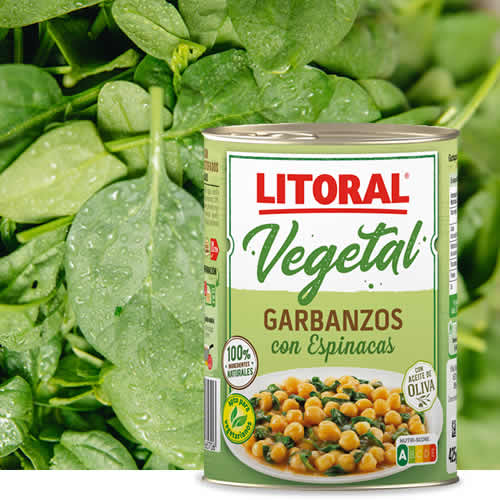 Garbanzos con Espinacas LITORAL con selectos ingredientes de cultivo local.