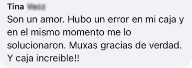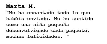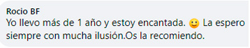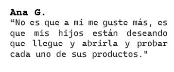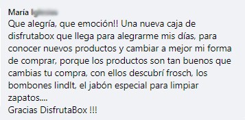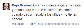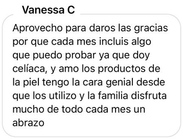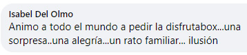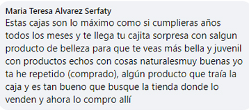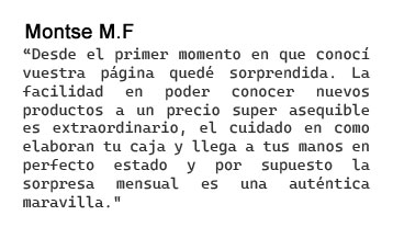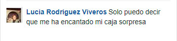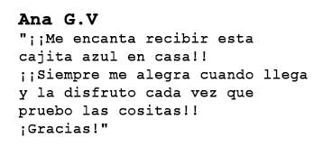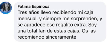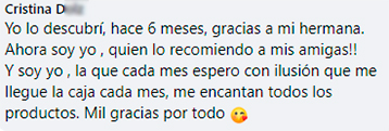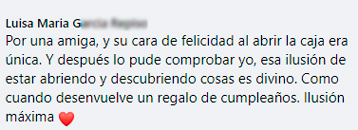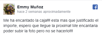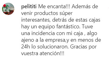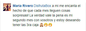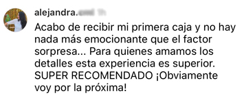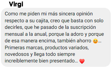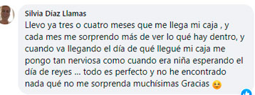 "Me encanta, es una caja que me encanta muchísimo, me gusta muchísimo lo que trae, cada mes se supera más. Cada vez que me llega una, ya estoy esperando la siguiente."